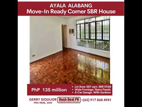 MOVE-IN READY CORNER 5BR HOUSE! For Sale: AYALA ALABANG, Lot: 587 sqm., PhP 135M