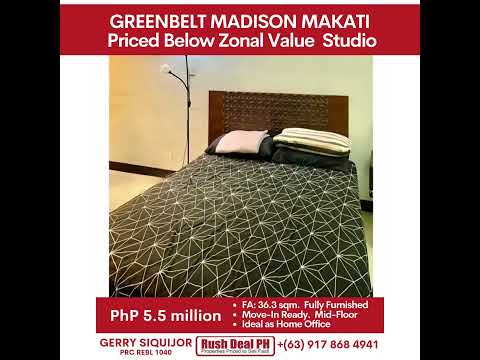 PRICED BELOW ZONAL VALUE STUDIO IN LEGAZPI VILLAGE! For Sale: GREENBELT MADISON, PhP 5.5M